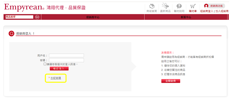 3. 輸入經銷商「用戶名」及「註冊的電子郵件地址」,按「確定」」