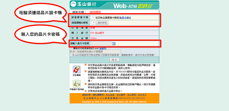 (2) 當付款方式選擇「WebATM」時: